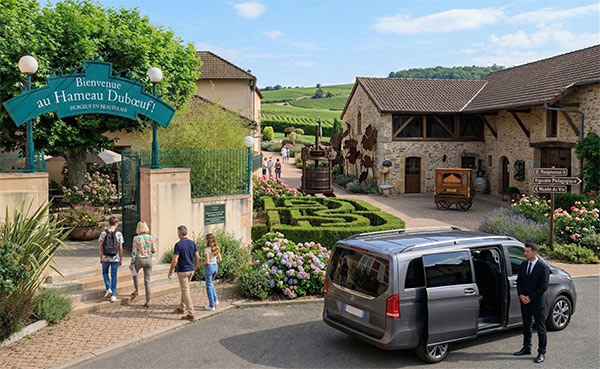 Nous mettons à votre service un chauffeur VTC haut de gamme pour vous accompagner lors d’une visite exclusive du Parc du Hameau Dubœuf et des domaines viticoles du Beaujolais. Depuis Lyon, nous organisons votre transfert sur mesure en van, berline, limousine VIP ou minibus, pour que vous profitiez pleinement de chaque dégustation sans contrainte de conduite.